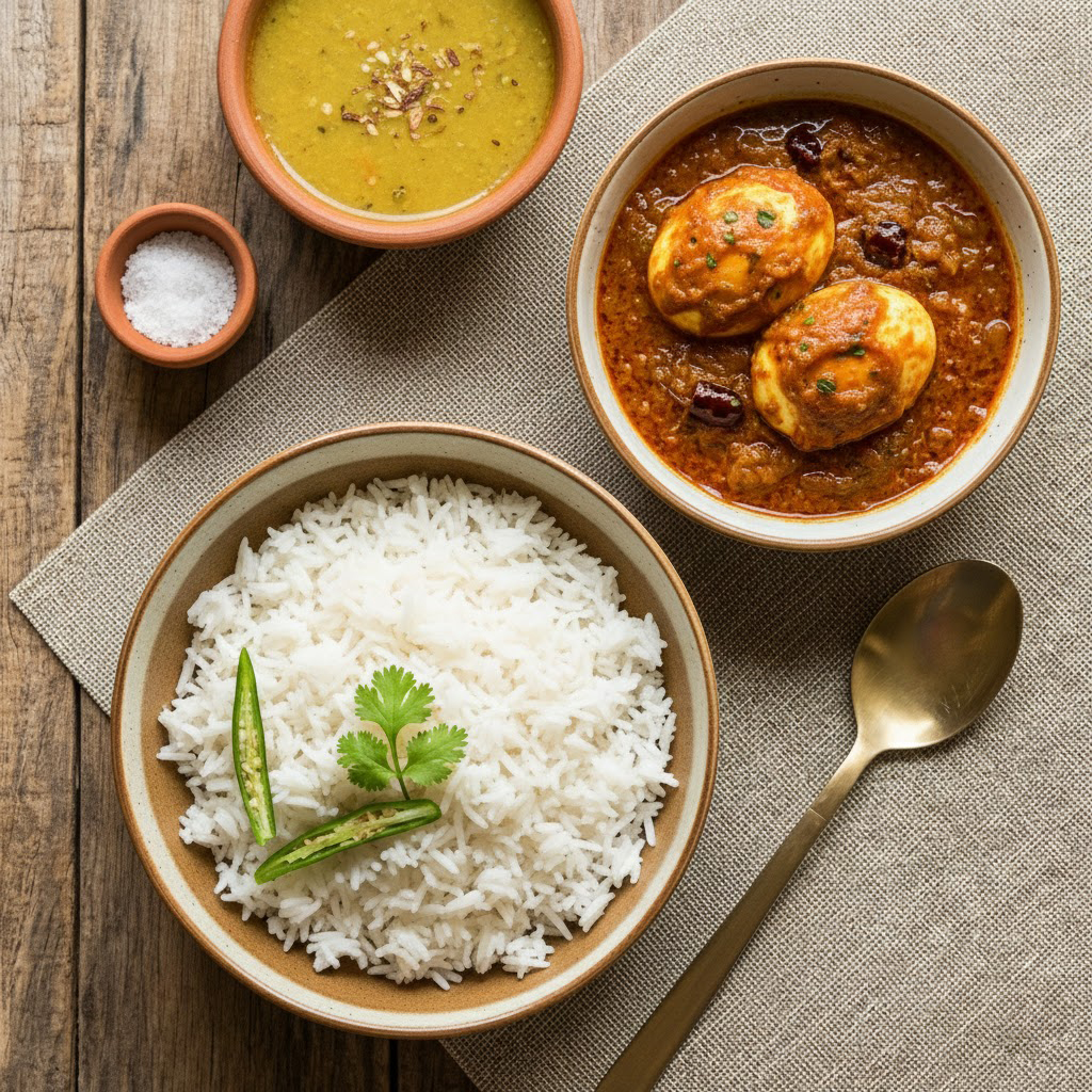 ভাত + ডিম ভুনা + ডাল